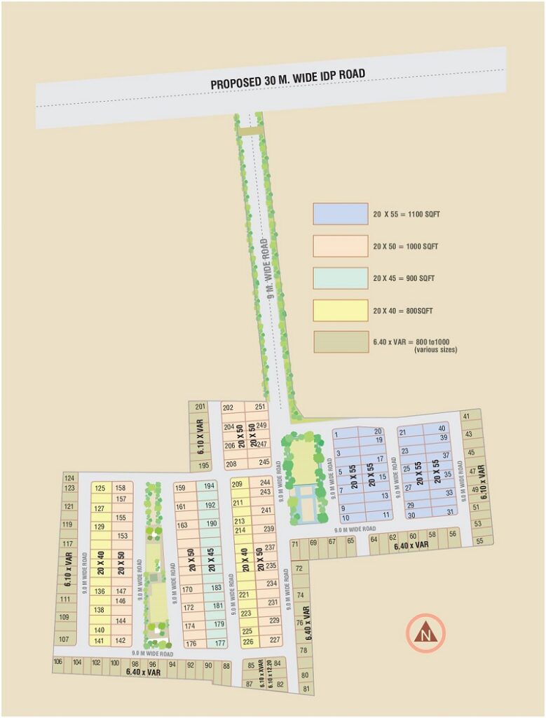 Available in the plot sizes from 800 sq. ft. to 1100 sq. ft. and planned with some of the best amenities like Cricket Net, Floor Games, Kid’s Playzone, Multi-purpose Court, Open-air Gym and Underground Electric Supply.